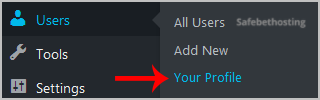 2. Under the dashboard menu, hover your mouse over Users and then click on Your Profile.
