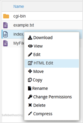 5. Right-click on the file and then on Edit or HTML Edit in the Context Menu.