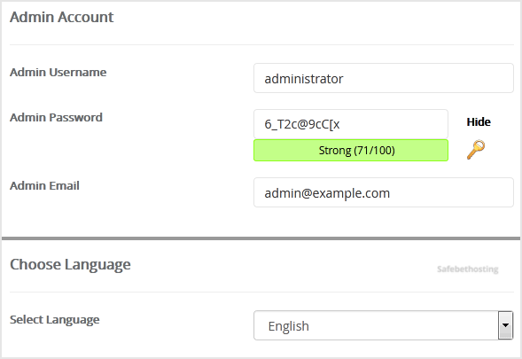 Note: Copy the admin username and password on a notepad because you will need these login details to access the admin area of your b2evolution blog.