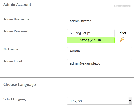 8. Under the Admin Account field, enter the following information: