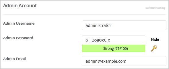 • Admin Username: Your new ProcessWire username (for security reason do not use the Administrator or the Admin username.)