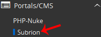 4. On the left side of your screen, you should locate the Portal/CMS category. Click on it and then click on the Subrion link that will appear.