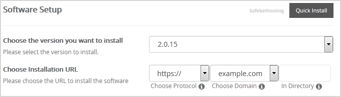• Choose Installation URL: Choose the appropriate protocol/domain. Inside the "In Directory" field, should you want to install this in a directory, i.e., example.com/directory, enter the directory name. Otherwise, leave it blank to install in your main domain, i.e., example.com