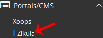 4. On the left side of your screen, you should locate the Portal/CMS category. Click on it and then click on the Zikula link that will appear.